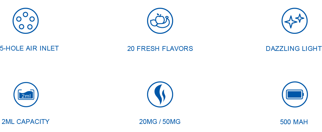 DRAGBAR 600S brings 20 kinds of original fruits and drinks flavors to the party animals. Meanwhile, the 5-hole air inlet intakes more airflow and comes with a mouthful juicy taste. Just invite your friends to enjoy the feast together!
